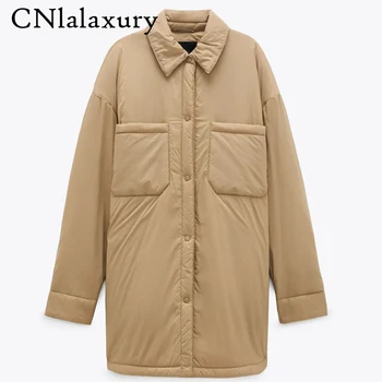 2020 New Autumn Winter Warm Cotton Jacket Coat Women Vintage Khaki Long Outwear Female Oversize Solid Overcoats Loose Parkas Top