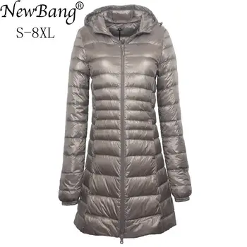 NewBang 7XL 8XL Plus Long Down Jacket Women Winter Ultra Light Down Jacket Women With Hooded Down Coat Female Big Size Coats