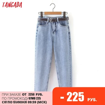 Tangada 2021 fashion women mom jeans pants with belt long trousers strethy waist pockets zipper female pants HY41