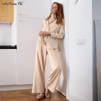 Mnealways18 Spring Summer 2 Piece Sets Ladies Office Outfits Shirts And Wide Legs Trousers Women Sets Oversize Suits Loungewear