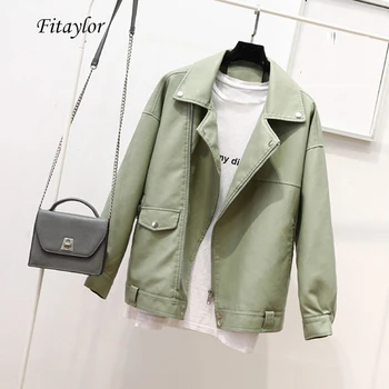 Fitaylor Autumn Faux Soft Leather Pu Jacket Women Loose Punk Coat Female Turndown Collar Moto Biker Rivet Zipper Street Overcoat