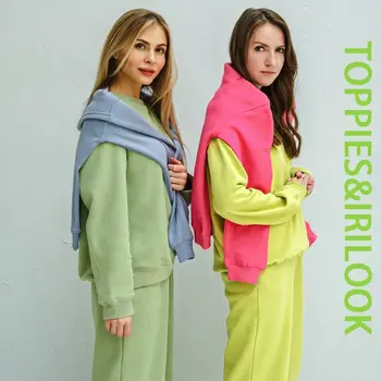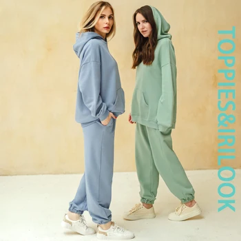 Toppies 2021 Women Hoodies and Sweatpants White Tracksuits Female Two Piece Solid Color Pullovers Jacket Lounge Wear Casual