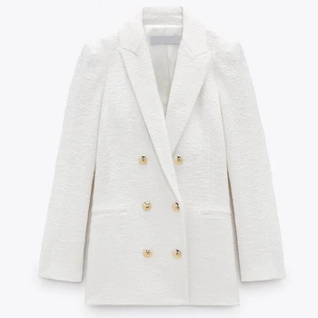 2021 Spring Autumn Women Fashion White Pink Tweed Blazers And Jackets Chic Button Office Suit Coat Ladies Elegant Outwear