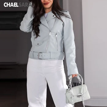 Spring Autumn Pu Faux Leather Jacket Women Purple Zipper Slim Short Biker Jackets Coat Female Outwear