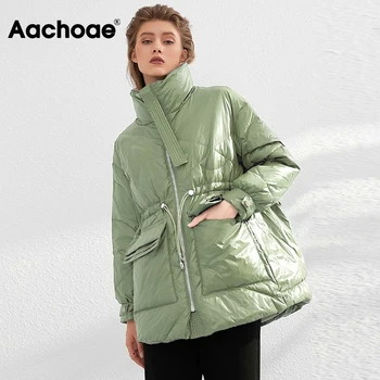 Aachoae Pure Winter Lightweight Down Jacket Women Thick Warm Batwing Long Sleeve Loose Doudoune Pocket Ultra Light Duck Down