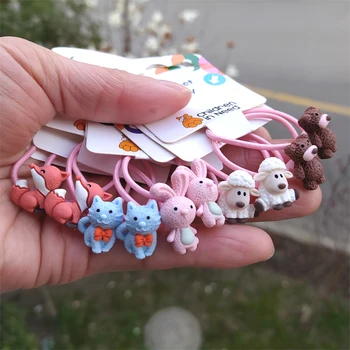 2PCS New Cute Cartoon Sheep Cat Princess Headwear Kids Elastic Hair Bands Children Ropes Girls Accessories Baby Headdress