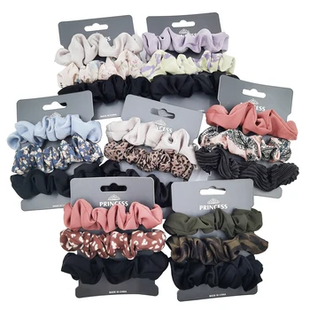 New 3PCS Silk Chiffon Print Hair Scrunchies Elastic Rubber Hair Bands Girls Women Ponytail Holder Hair Rope Ties Accessories Set