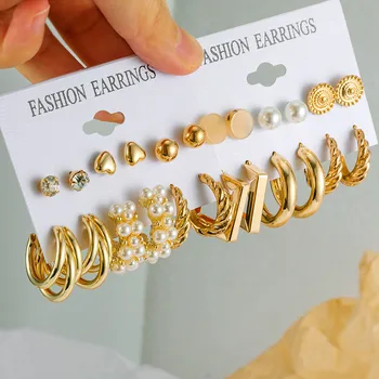 Women’s Earrings Set Korean Pearl Hoop Earrings for Women Geometirc Gold Circle Earring 2021 Trend Jewelry Gift Accessories