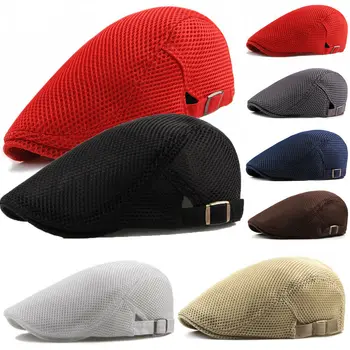 Fashion Men Women Flat Cap Mesh Summer Golf Driving Sun Beret Cabbie hat Breathable French Style 7 colors