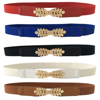 Women belt Elastic Waistband Thin Stretch Wrap Buckle Waist Belt Elegant Cummerbunds Fashion Leaf Belt for Dress Accessories
