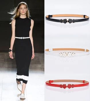 JIFANPAUL New dripping plum blossom patent leather ladies wild decorative small belt Korean decorative belt women’s belt
