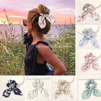 Fashion Print Hair Scrunchie Bowknot Hair Rope for Women Girls Ponytail Holder Hair Ties Elastic Hair Bands Hair Accessories