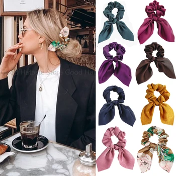 New Chiffon Bowknot Elastic Hair Bands For Women Girls Solid Color Scrunchies Hair Ties Ponytail Holder Headband Hair Accessorie