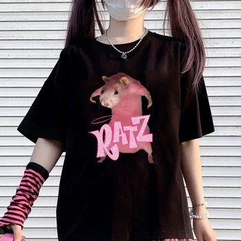 RATZ animal kawaii summer femme t-shirts Short sleeve harajuku Loose pink tees shirt Streetwear gothic women clothing tops топы