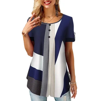 Summer Women Loose Casual Printed Round Neck Short Sleeves Plus Size T Shirts Summer Tops