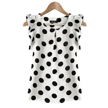 Hot Women Summer Casual Polka Dot Round Neck Short Sleeve Shirt Top Chiffon Blouse