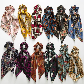 Fashion Floral Single Printed Scrunchie Elastic Hair Band For Women Hair Scarf Bows Rubber Ropes Girls Hair Ties Hair Accessory