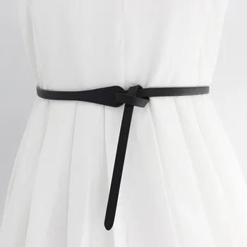 New Candy Color Shiny PU Leather Waist Belt For Women Narrow Thin Belts Waistband Knot Straps For Dress Party Belt Skirt Belt