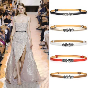 JIFANPAUL Rose Flower Pair Buckle Girdle Female Decorative Dress Korean Trousers Fashion Skirt With Shiny Small Leather Belt