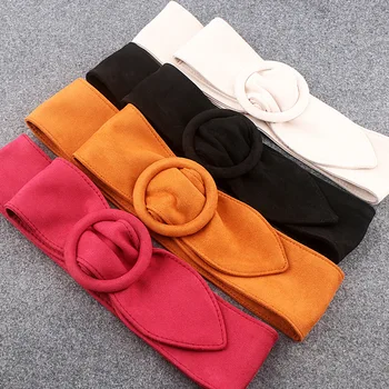 The Girl Round Button Suede Flannel Belt Women’s Soft Face Width Decoration Strap Designer Velvet Fashion Belts Cinturon