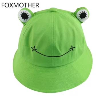 FOXMOTHER New Cute Green Black Frog Print Fisherman Panama Cap Bob Chapeau Summer Cartoon Bucket Hat For Women Ladies