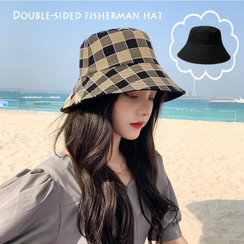 2021 New Cap Black White Grid Bucket Hat Flat Fishing Hat Hip-Hop Plaid Cap Hats Autumn Fisherman Hat For Women Girls