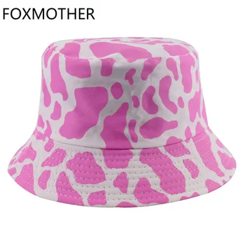 FOXMOTHER New Fall Fashion Black Pink Cow Print Bucket Hats Women Fisherman Caps Autumn
