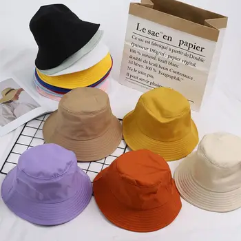 Summer Autumn Sun Bucket Hats Women Buckets Caps Cotton Adult Flat Top Weed Hat Fisherman Sunscreen Hats For Ladies